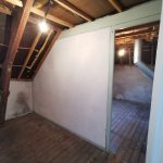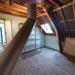 Pour le Grenier, une cloison briques a été démolie afin de libérer l’espace, le plancher bois ancien a été poncé puis vitrifié, le conduit de fumées inox était à encoffrer dans un doublage coupe-feu, tous les murs et plafonds rampants ont été isolés et doublés en placoplâtre, les beaux éléments de charpente ont été poncés puis repeints afin de les faire apparaître, enfin une fenêtre de toit patrimoine a été installée plus grande que l’ancienne et plus performante énergétiquement. Le grenier est devenu une jolie chambre d’amis /bureau.