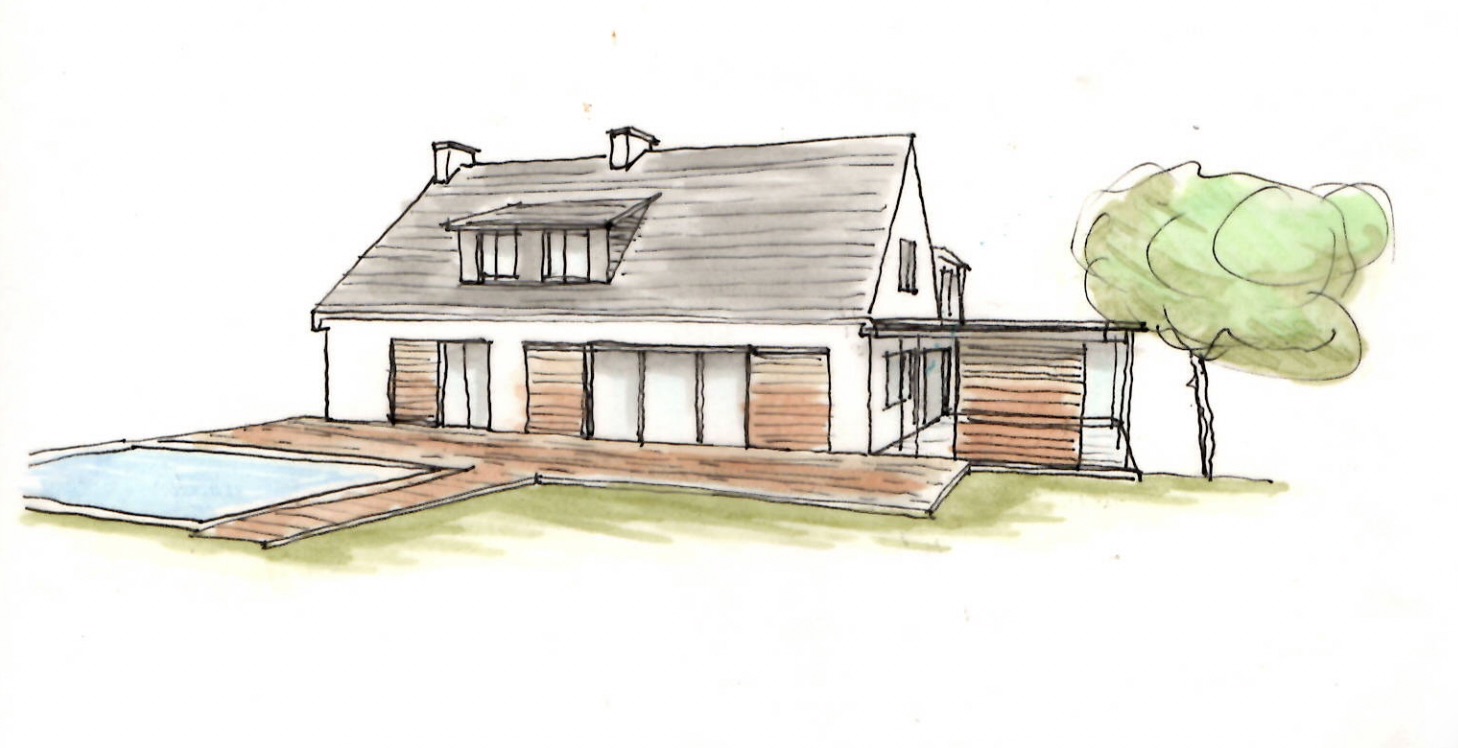 Comme cette maison a été acquise en résidence secondaire, le projet d’extension n’a pas vu le jour, les clients ont finalement opté pour un projet réduit à l’agrandissement des baies vitrées donnant sur le golfe d’un côté et la piscine de l’autre.