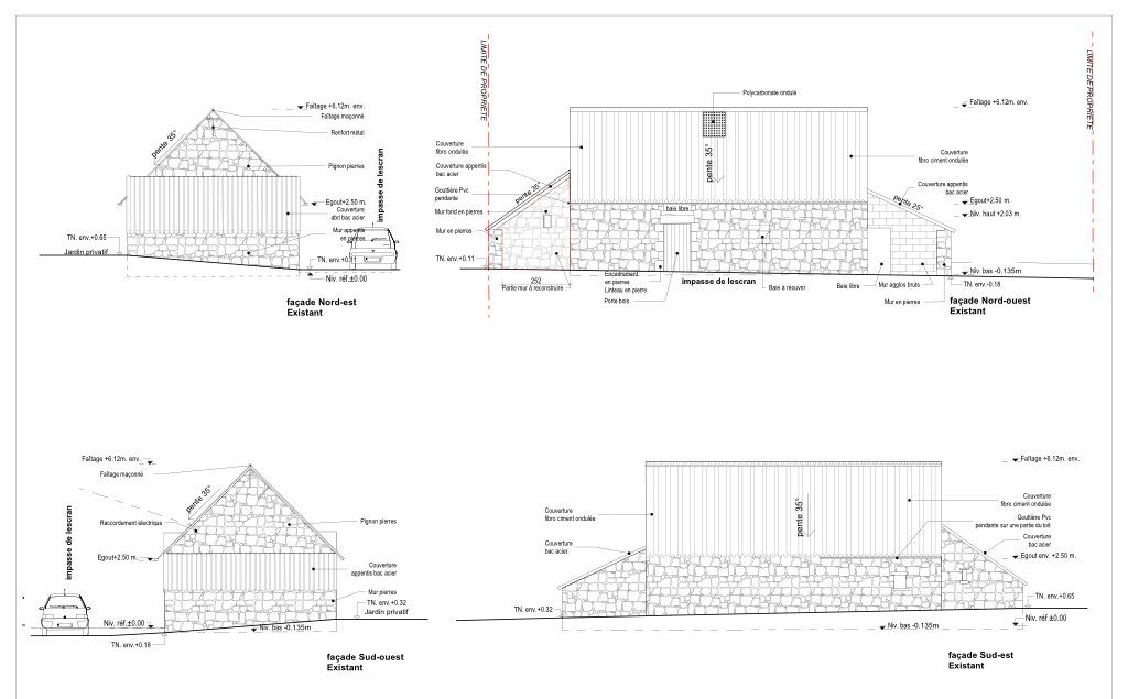 Le terrain est bordé au nord par 3 poteaux électriques et télécom. L’un deux se situant à 30 cm de la bâtisse a fait l’objet d’une demande de déplacement. Ainsi qu’une ligne EDF qui surplombait la bâtisse.