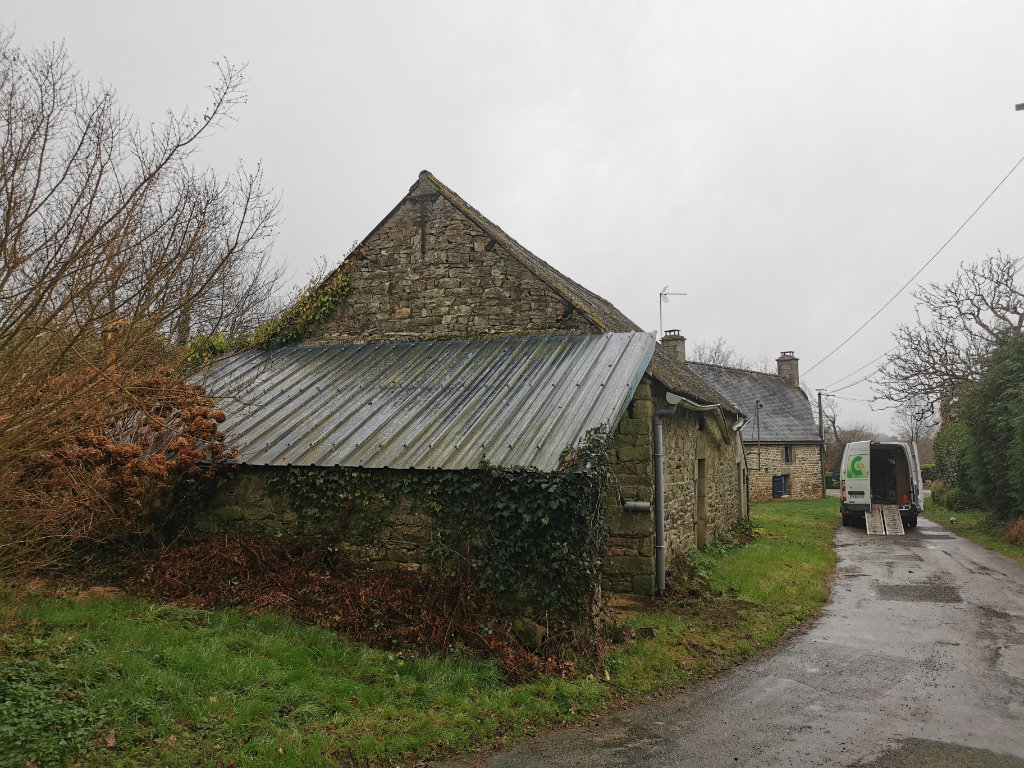 La bâtisse en pierres est une ancienne cidrerie, son plan est rectangulaire avec un niveau de stockage à l’étage et le RDC en terre battue avec l’ancien pressoir, le terrain comporte encore un verger de pommiers.